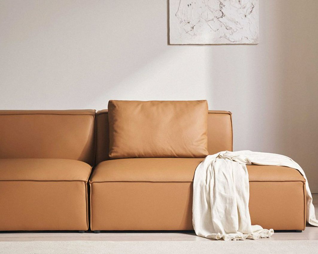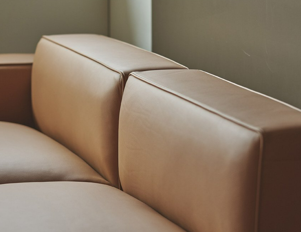 레이디가구 로운 천연가죽 모듈 소파는 미니멀한 디자인에 편안한 착석감이 특징입니다. 샌드아이보리, 토피브라운 2가지 색상이고 착석감은 조금 하드한 편입니다. 더블 스티치 방식으로 가죽 테두리를 마감해 고급스러운 디테일과 감성을 느낄 수 있습니다. 팔걸이와 등받이 상단을 24cm로 제작하여 팔을 걸치거나 간단한 물건을 올려두기에도 좋습니다. 가족의 니즈에 따라 자유로운 배치를 활용할 수 있는 모듈형 소파의 장점을 충분히 느낄 수 있습니다. 로운 소파의 모든 쿠션 후면에는 촘촘한 구멍이 있어 통기성이 우수합니다. 공기 순환력이 높아 사용 자세에 맞게 빠르게 수축하고 오랜시간 깔고 앉거나 누웠어도 빠르게 원래의 형태로 돌아옵니다.