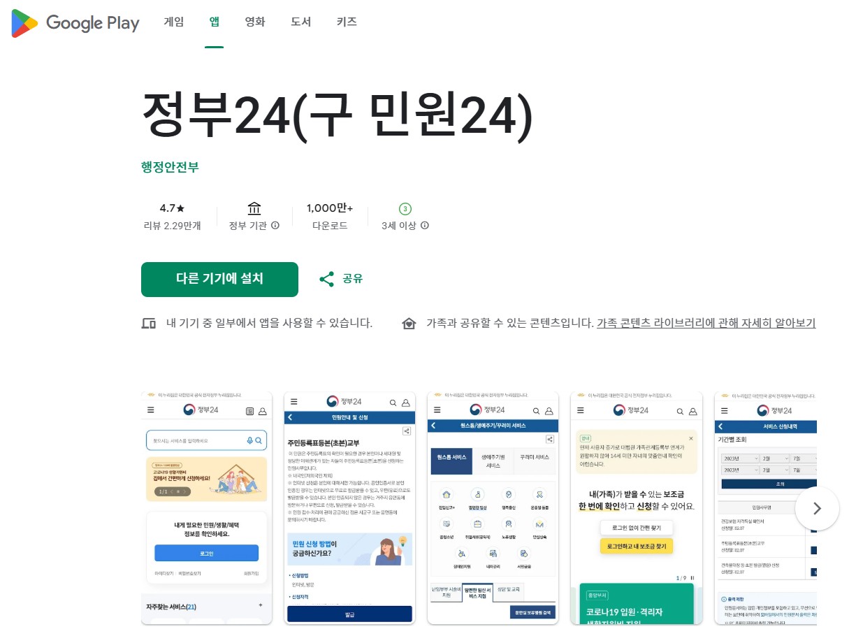 - 정부24 앱 설치 및 로그인