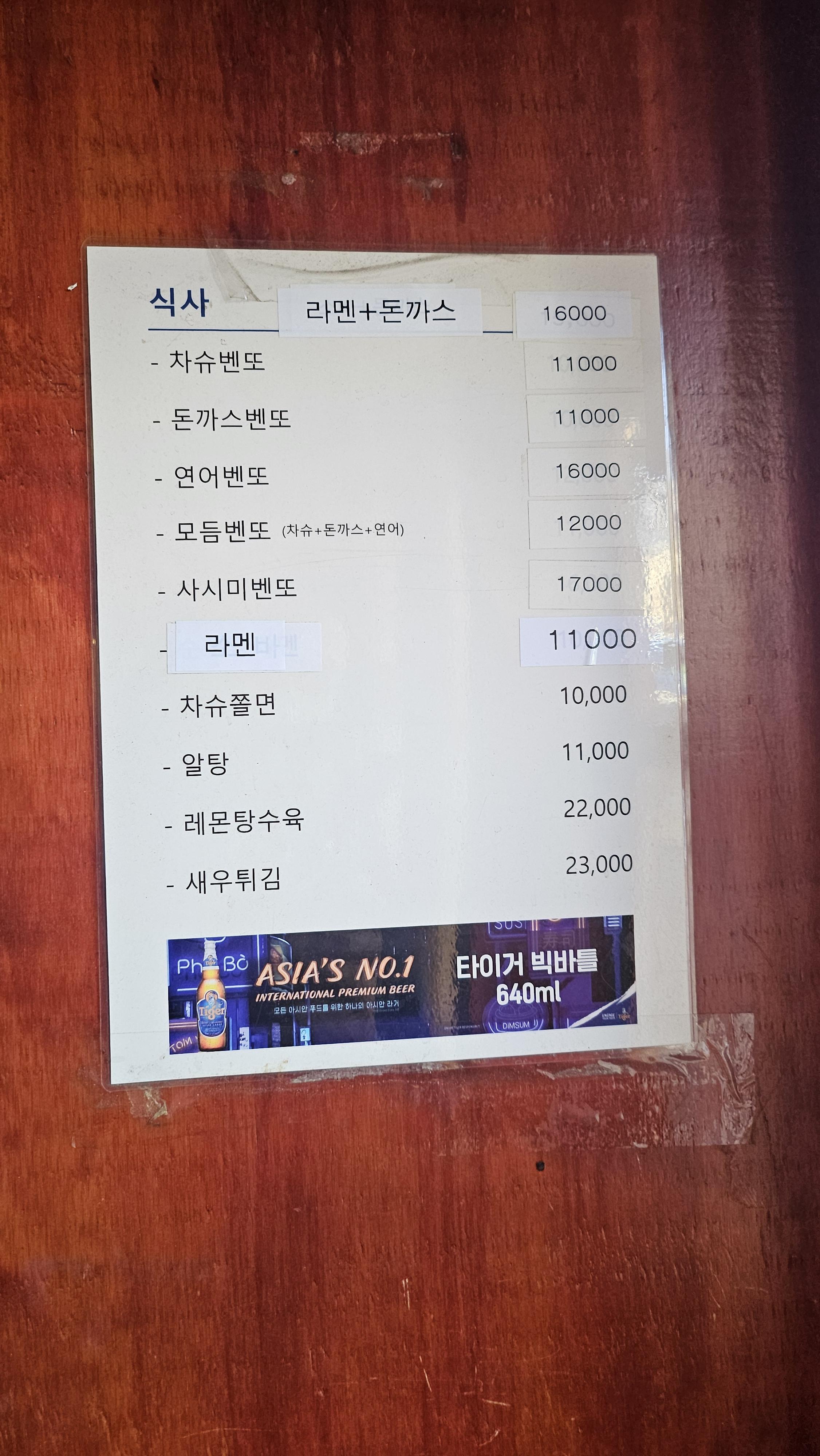 물가가 많이 올랐다고 알고는 있었지만 메뉴보니 서울 물가 참 무섭다 싶었습니다. 그래도 먹고 일해야죠. 차슈쫄면이 10,000원으로 가장 저렴했고 새우튀김이 23,000원으로 가장 비싸네요. 점심시간 식사 메뉴로는 벤또가 가장 인기 메뉴같습니다.