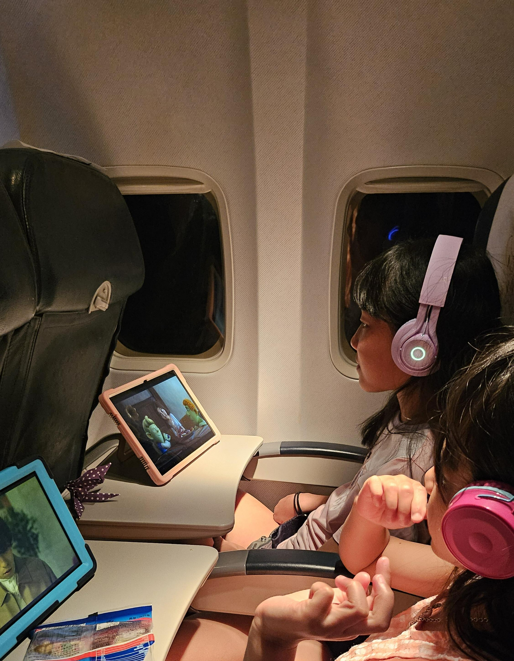 단, 기내에 탑승하자마자 처음부터 태블릿을 보여주지는 말고 최대한 다른 아이템들을 활용해서 시간을 보내다가 최후의 수단으로 제일 마지막에 미디어 타임을 갖길 권합니다. 그래야 짧고 굵게 집중도 효과가 더 좋습니다. 태블릿에는 유튜브나 넷플릭스 등을 통해 미리 다양한 영상이나 애니메이션을 다운로드하여두고 기내에서 와이파이를 사용하지 않고도 플레이가 가능하도록 준비합니다.