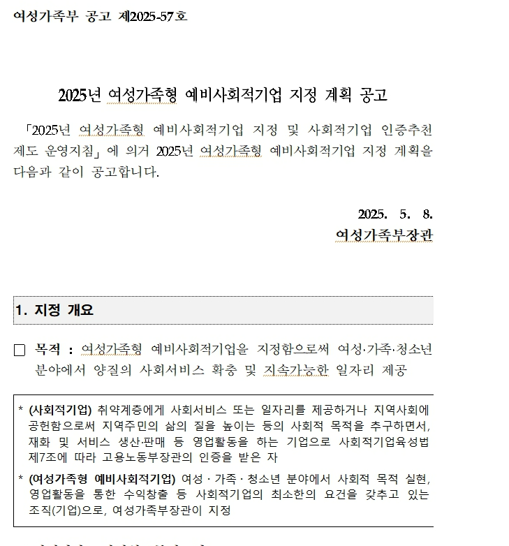 - 지정결과 발표: 2025년 7월 초 (여성가족부 홈페이지)