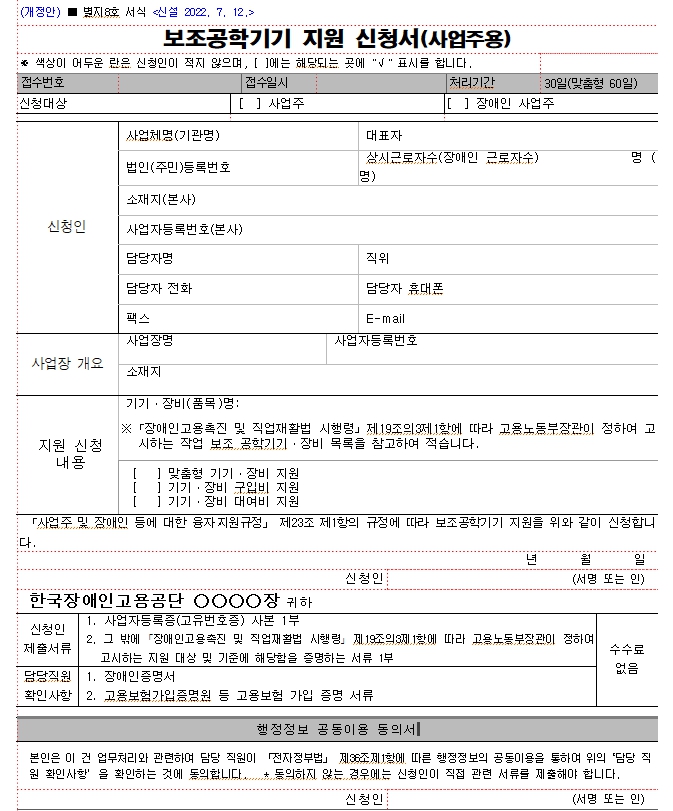 2025년 보조공학기기 지원제도는 단순한 장비 지원을 넘어, 장애인의 자립과 고용유지를 위한 핵심적인 사회 제도입니다. 장애인의 실제 근로 환경에 꼭 필요한 장비를 전문가의 상담을 통해 맞춤형으로 제공받을 수 있으며, 사업주도 부담 없이 장애인 채용을 확대할 수 있는 좋은 기회가 됩니다. 특히 보조공학기기 품목이 다양화되고, 신청 절차가 간소화되면서 누구나 쉽게 접근할 수 있게 되었습니다. 장애인 본인 또는 관련 사업주라면 지금 바로 한국장애인고용공단을 통해 상담 및 신청을 진행해보시기 바랍니다. 정부의 제도를 적극 활용해 더 나은 근로 환경을 만들어보세요.
