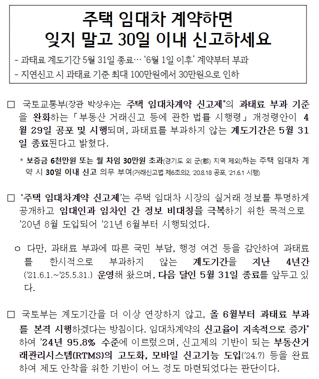 - 계약 체결일이 5월 31일 이전이면 과태료 없음