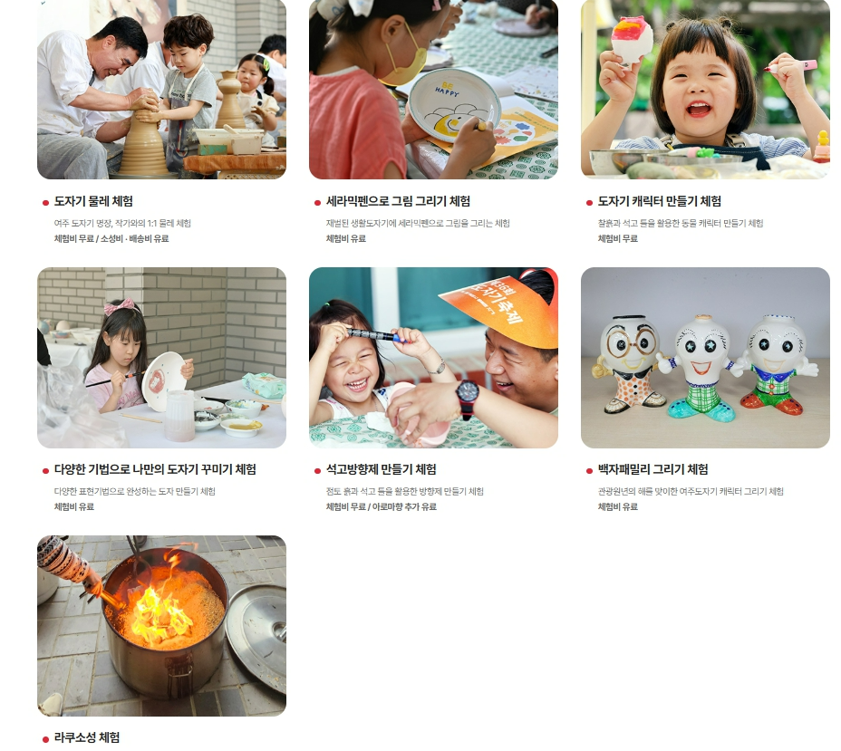 - 어린이 체험부터 전통 가마 체험까지 다양한 연령층 맞춤