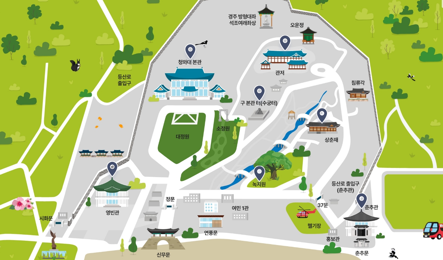 청와대는 생각보다 넓은 공간이며, 구역마다 의미와 풍경이 달라 효율적인 동선을 미리 파악하는 것이 좋습니다. 특히 유모차나 휠체어를 사용하는 가족, 어르신을 동반한 경우, 또는 어린 자녀와 함께 방문하는 경우에는 휴식 가능한 지점과 관람 포인트를 알고 가면 더욱 편리합니다. 여유롭게 관람할 경우, 전체 소요시간은 1시간 30분~2시간 정도이며 중간에 앉을 수 있는 벤치나 그늘도 곳곳에 마련되어 있습니다.