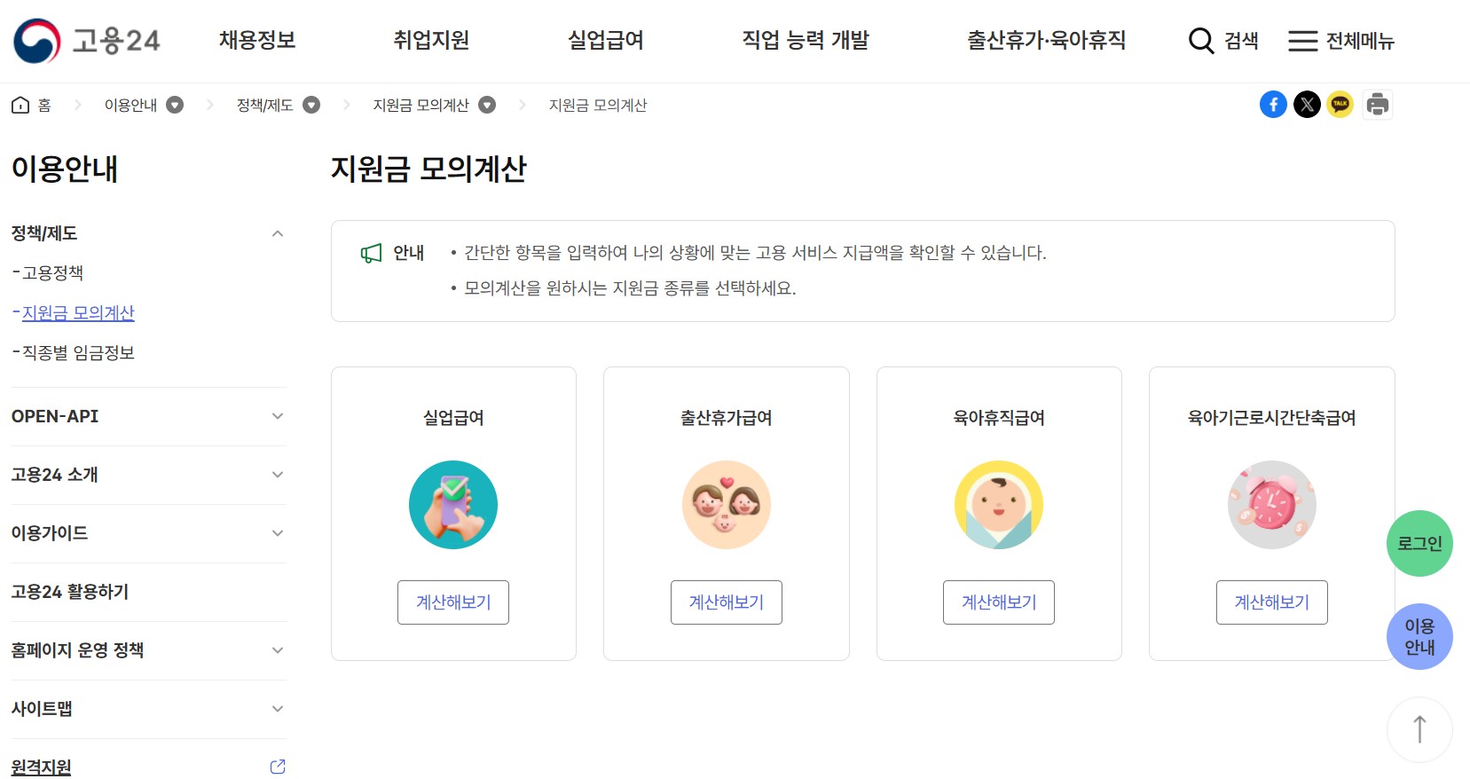 - 💡 모의계산 방법고용보험 홈페이지 내 출산휴가급여 모의계산기 이용