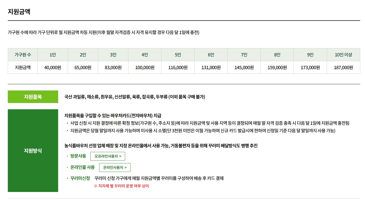 2. 농식품바우처 지원 대상 및 조건 정리