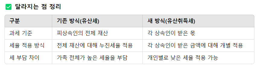 새로운 제도에서는 유산취득세 방식이 도입됩니다.