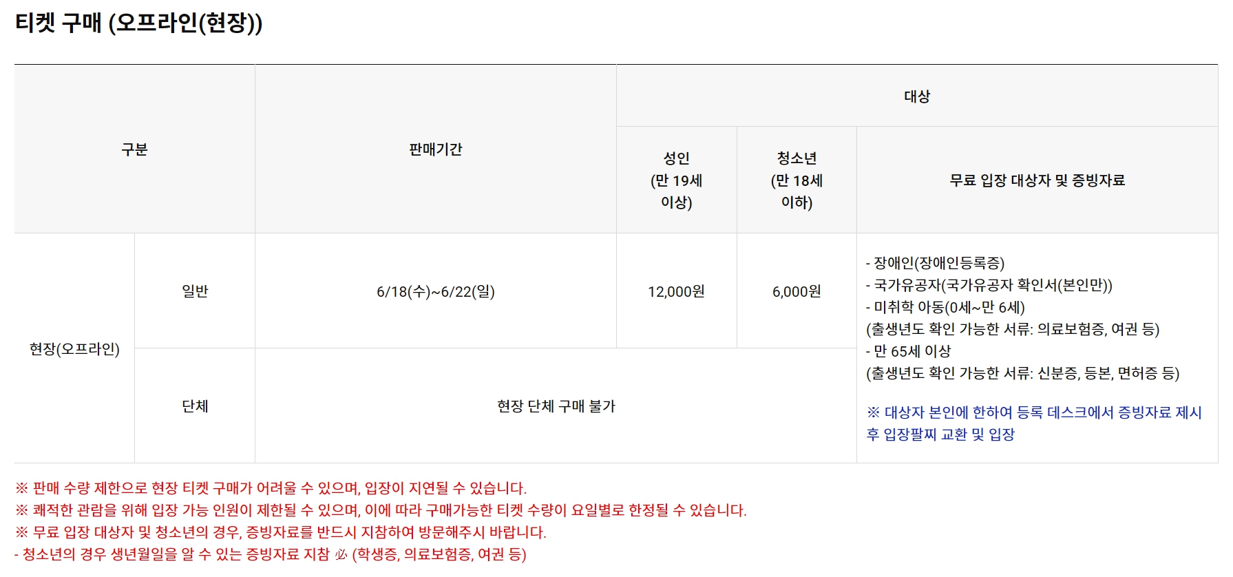 - ※ 티켓 수량 제한으로 입장이 어려울 수 있으며, 대기 시간이 발생할 수 있습니다.