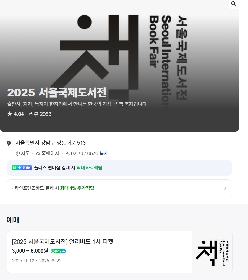 2025 서울국제도서전 얼리버드 1차 (50%할인) 온라인 티켓 예매하러 가기