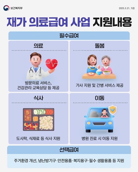 집에서도 의료 서비스와 돌봄을 받을 수 있도록 지원하는 정부 제도입니다.