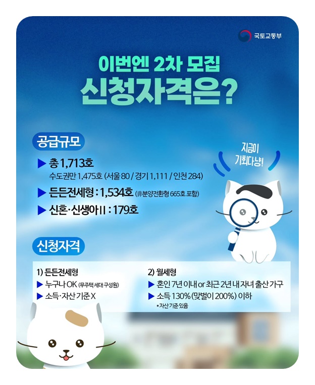 서울과 수도권 중심으로 공급되는 만큼 관심 지역이 있다면 늦기 전에 신청 요건을 꼼꼼히 확인하고 준비해보시길 바랍니다.