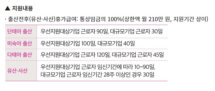 2. 출산휴가급여 외 추가 지원 제도 요약