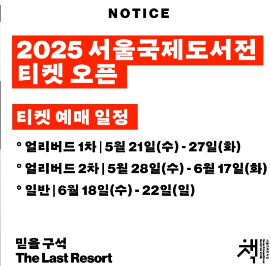 2025 서울국제도서전 얼리버드 1차 (50%할인) 온라인 티켓 예매하러 가기